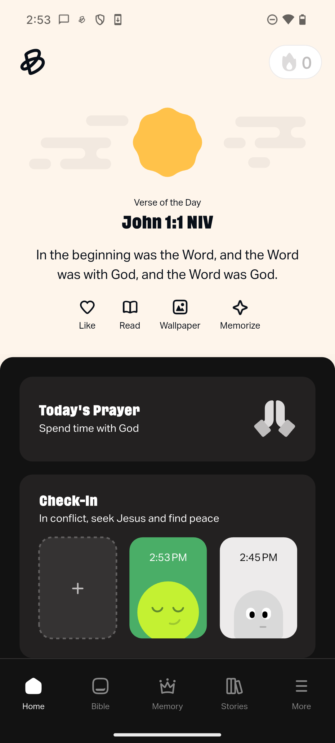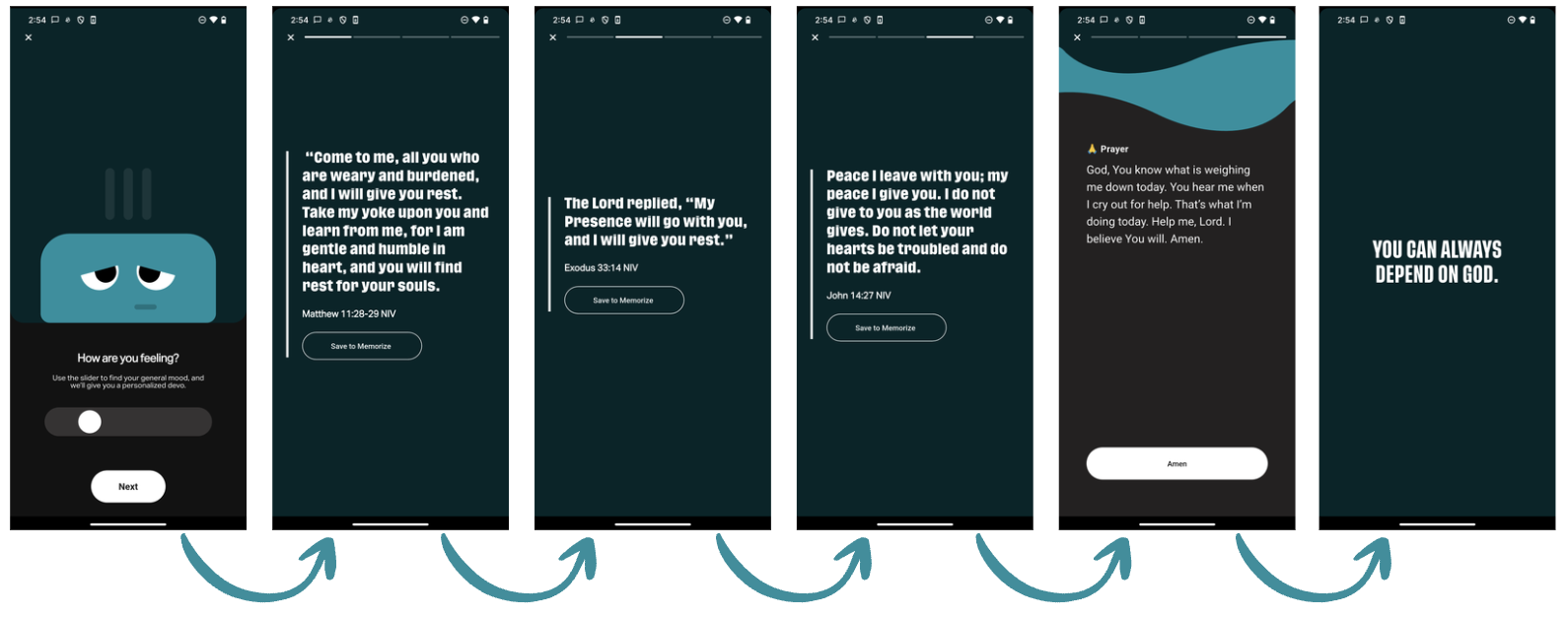 Feelings Check-In is an experience that connects you to Scripture based on where you are emotionally. Use the slider to reflect how you're feeling, and Bible Loop will guide you through a short, personalized devotional built around God's Word.